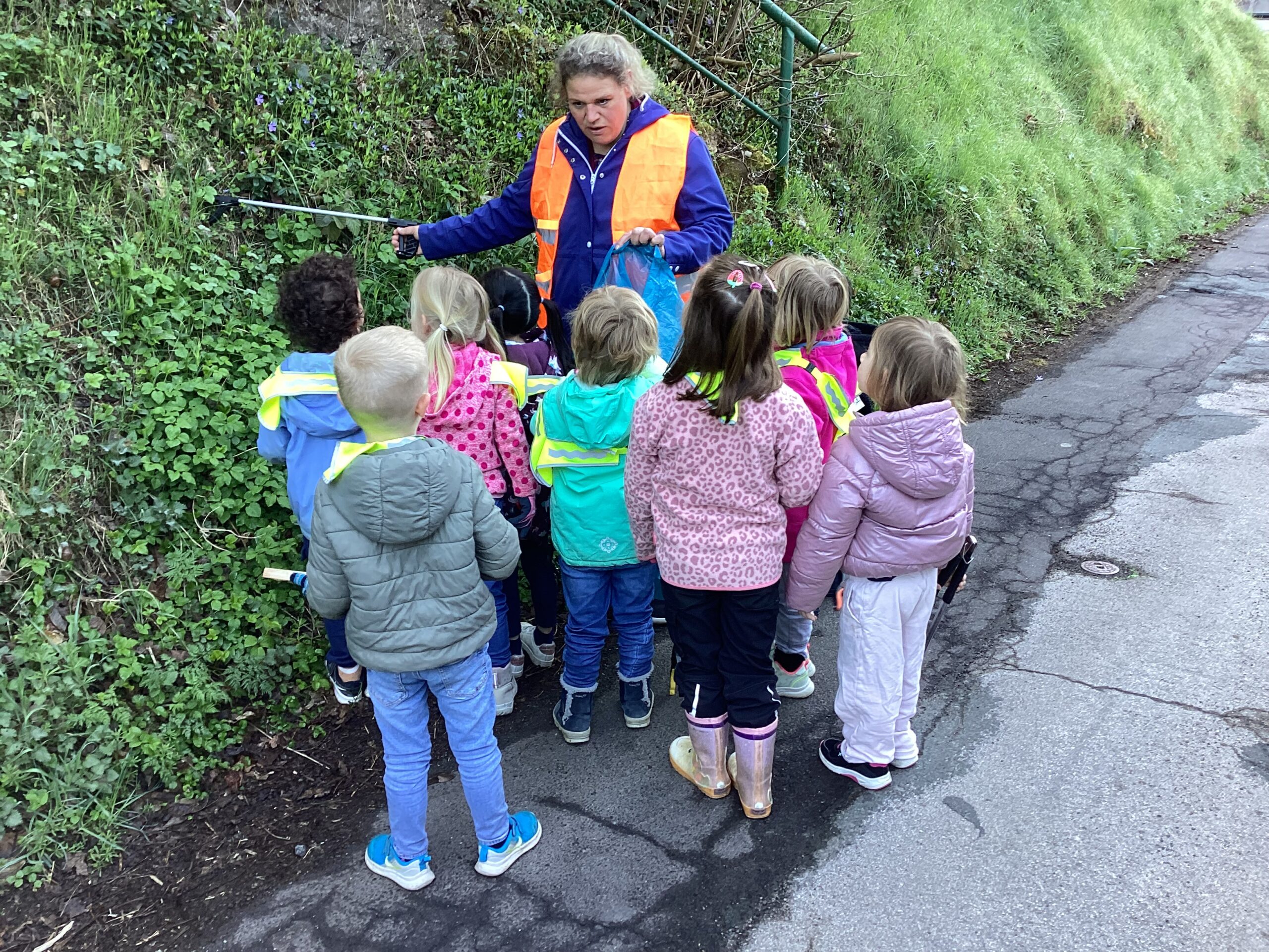Die Müllsammelaktion wird auch noch weiter in das Projekt „Klimaspürnasen eingebettet. Am kommenden Montag erstellen die Kinder aus den gesammelten Abfällen eine „Girlande der Schande“. Diese wird dann vor dem Kindergarten ausgestellt.